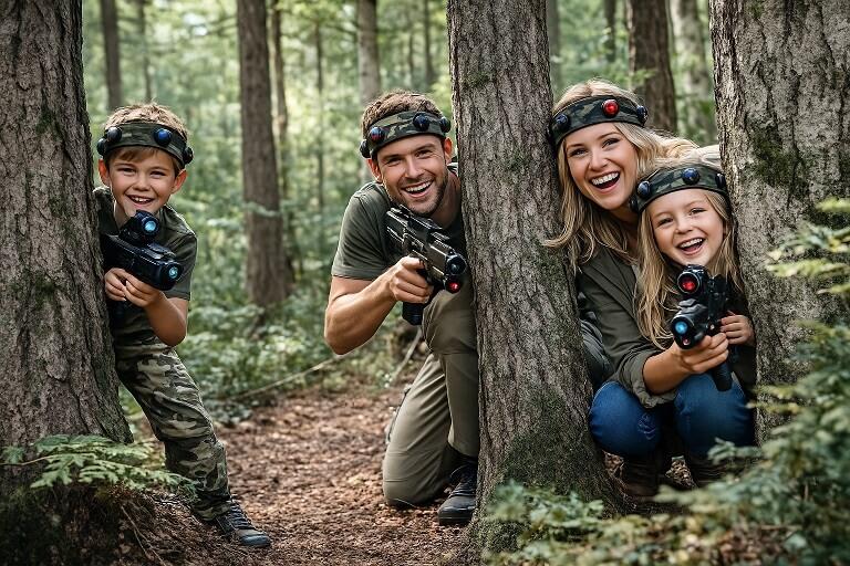 Outdoor lasertag v Bratislave – akčná tímová hra plná adrenalínu, pohybu a zábavy. Ideálne pre oslavy, skupiny priateľov aj teambuildingy.